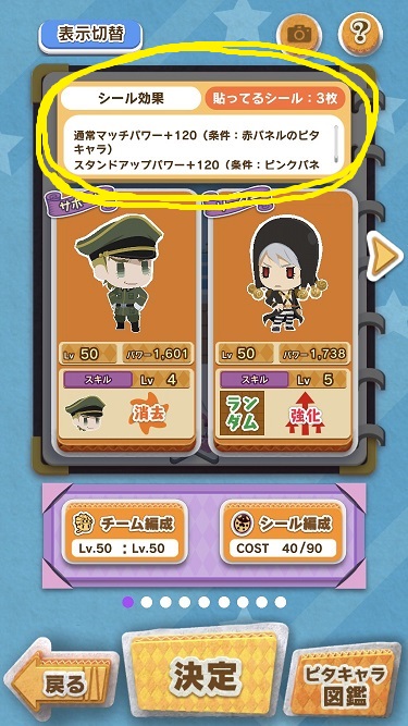 (ただし編成画面の「貼ってるシール」の数には「台紙」の分も含まれている)